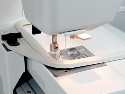 Первая из таких «приятностей» - монитор. В самых простых моделях на черно-белом мониторчике в процессе вышивания показывается номер вышиваемого цвета, количество стежков вышитых текущим цветом, общее число стежков текущего цвета, оставшееся количество стежков и оставшееся время до окончания вышивания. Эту информацию можно считать минимально необходимой. В более сложных машинах на небольшом цветном экране схематически показывается вышиваемый рисунок, выделяется вышиваемая область и показывается текущее положение иглы. Самые дорогие машины оснащены полноцветными большими сенсорными мониторами высокого разрешения, на которых вышивка изображается в реалистичном виде. Если вы планируете вышивать картины, совмещая несколько дизайнов, вышивать на деталях одежды с точным позиционированием вышивки, и решать подобные задачи, выбирайте машину с большим монитором. Наличие большого монитора позволяет во многих машинах использовать функции точного позиционирования одного дизайна относительно другого. Без такой функции точная стыковка дизайнов оказывается непростым делом.