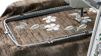 Многие производители выпускают «переставные» пяльцы для своих машин. Такие пяльцы имеют несколько креплений, и сначала вышивается одна половина дизайна, затем пяльцы закрепляются за второе крепление, и вышивается вторая половина. Дизайн для таких пялец должен быть предварительно подготовлен – разделен на части в специальной программе.