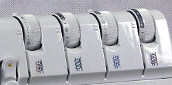 В простых моделях оверлоков используются натяжители установленные на передней крышке, как показано на фотографии.