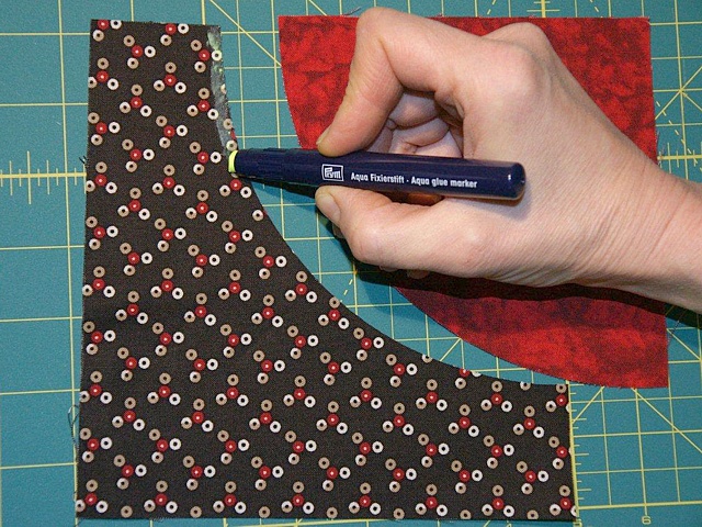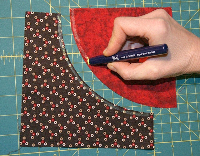 Нанесите клей "Aqua glue marker" на криволинейные припуски деталей с лицевой стороны.