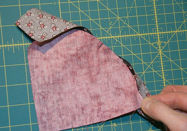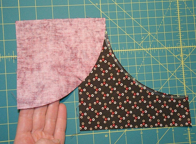 Разметьте середины выпуклого и вогнутого краёв деталей с изнаночной стороны.