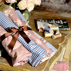 Добавить тепла и уюта в загородном доме или же привнести ощущение комфорта вашей квартире и создать атмосферу простой жизни в деревне можно с помощью тканей из коллекции Country Chic Cottage и выполненных из нее аксессуаров. Спокойные природные оттенки в сочетании с мелкими цветочными узорами и простой клеткой - эти ткани идеально подойдут для пэчворка, для шитья декоративных настенных панно, одеял и подушек, выполненных в этой технике, и много другого, а банты и рюши станут неотъемлемой частью украшения ваших проектов.