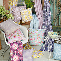 Почувствуйте легкое и прохладное дуновение ветра, перенеситесь в цветущие сады и ощутите солнечное тепло с новой коллекцией тканей Light Breeze. Цветовые решения просто идеальны для декорирования вашего загородного домика: подушки, скатерти, шторы розовых, бирюзовых, желтых, серо-фиолетовых и синих оттенков с необычными орнаментами в виде всевозможных калейдоскопов украсят вашу веранду или беседку под тенью деревьев. Дополните ваш образ эспадрильями, объемной сумкой и смело отправляйтесь на природу. Добавьте яркости и весеннего настроения и в ваш домашний интерьер: яркие птицы и цветы сочетаются с элегантными узорами и мелкими сдержанными рисунками этой коллекции.