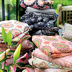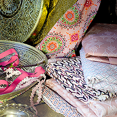 Коллекция тканей Marrakesch собрала в себе все характерные черты Марокко. Спокойные оттенки розового и светло-зеленого, которые будто выгорели на солнце, сочетаются с яркими красками, а различные орнаменты прекрасно гармонируют друг с другом. Здесь Вы найдете и рисунок "Пэйсли" или Огурец в различных вариациях, и яркий узор в виде круга - мандала, и множество ромбовидных орнаментов. Оформите интерьер или дополните свой образ с помощью тканей из этой коллекции и почувствуйте атмосферу, пропитанного ароматами фруктов и специй, жаркого и яркого Марракеша.