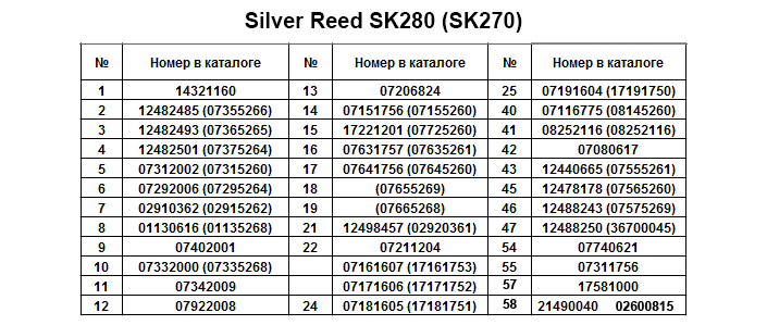 Запчасти для Silver Reed SK280