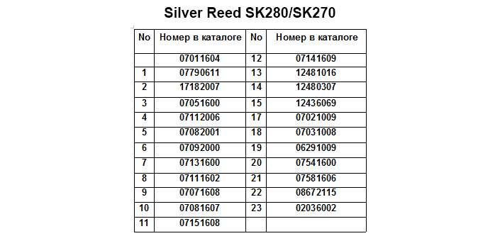 Запчасти для Silver Reed SK280