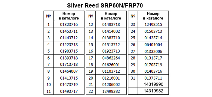 Запчасти для Silver Reed SRP60N/FRP70