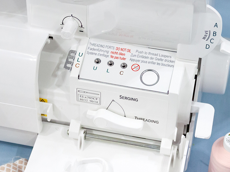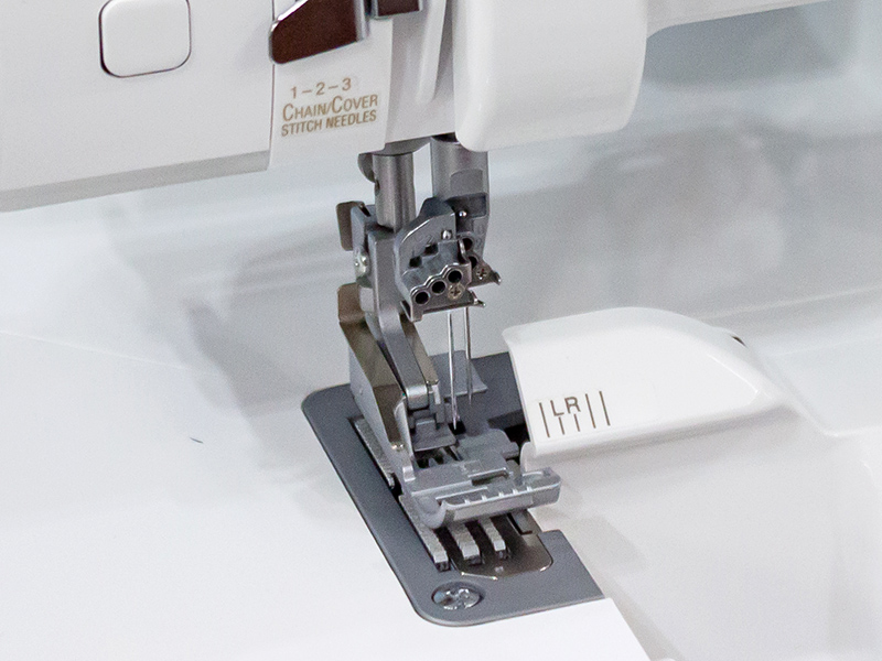 Машина оснащена усовершенствованными нитенаправителями петлителя и игольных нитей, что делает процесс заправки еще проще и удобнее. Также изменена форма вспомогательного петлителя.