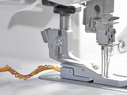 Коверлок оснащен улучшенным дифференциальным транспортером в виде одного полнофункционального блока продвижения ткани, благодаря чему обеспечена идеальная четкая подача ткани.