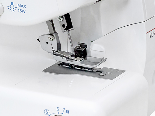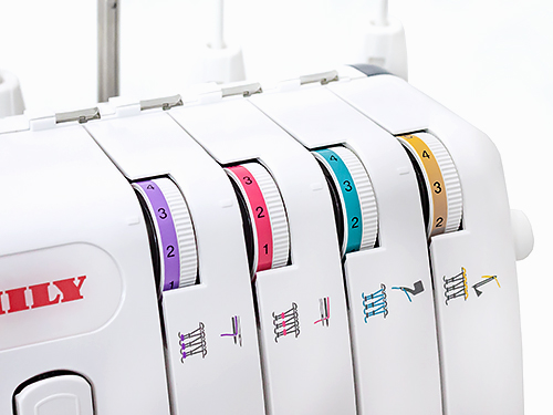 Оверлок позволяет шить 4, 3, а также 2 нитями с помощью специального конвертера. Для получения качественной строчки вы можете отрегулировать давление лапки, длину стежка, ширину строчки и значение дифференциального транспортёра, влияющего на растяжение и сборение материала.