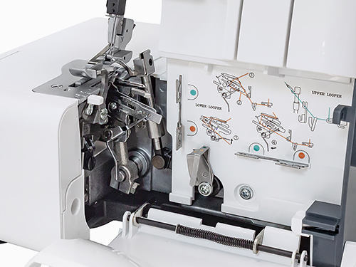Цветная маркировка, схема за передней крышкой и особая конструкция со специальным переключателем помогут вам быстро и не прилагая особых усилий выполнить заправку нитей в петлители.