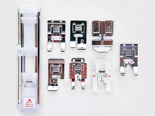 Преимуществом Onyx 25 является большое количество лапок, входящих в комплект. Машина позволяет выполнять разнообразные типы швейных операций: невидимую подгибку, вымётывание петли, обмётывание края, вшивание молнии, выполнение декоративных строчек, шитьё кожи и винила, а также шить с припуском при создании квилт-проектов.