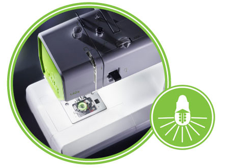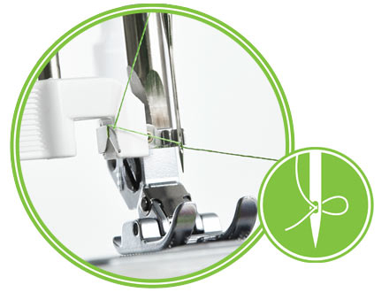Встроенный заправщик нити облегчит вам трудоемкий процесс. Просто возьмитесь за кончик нити, а заправщик сам протянет ее через ушко иглы.